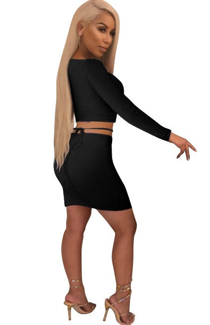 Crisscross Lace up Long Sleeve Two-piece Set
